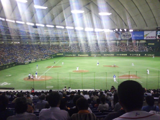 外野席のラッパの応援は、言われているほど気にならなかったが、攻守途中でも通路をうろうろ歩いている奴が多数いてちょっと閉口。(シアトルマリナーズのホーム、セーフコフィールドでは、イニングの間は通路に出入りできないので、席をたつのは攻守交代のときだけで、とても見やすい。)可愛い女の子がでかい樽(満タンで15kgあるらしい)を背負ってビールを売りにくるのはとても便利であったが、全体に落ち着いて野球見るって感じじゃないと思った。
