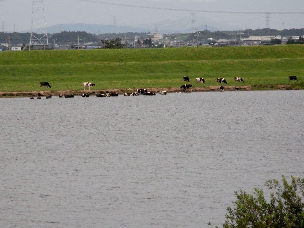 自転車のスピードだと、いろいろ目についたものを立ち止まっては眺めていける。確かにシンプルな人生を選んでみたいけど、だからどうしろというのだろう、と思ったり、どっちに行っても国道356号線だったり、牛が利根川で水浴びしていたり。(この牛は、水浴びが終わると、土手を越えて自分で牛舎に勝手に戻るようだ。)