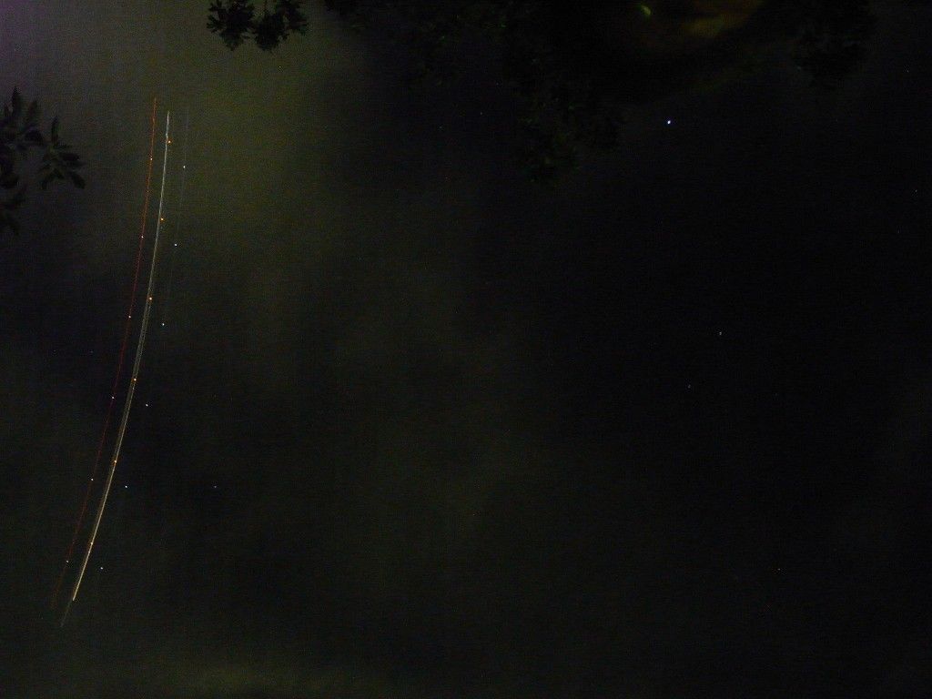 RICOHのR10の長時間露光は最大8秒。ISOも800までしか使い物にならないので、星空写真はこのカメラでは無理だが、それでも何枚かトライしてみた。これは設定を間違えてISO1600にしたので、少しノイジーだが、上空を飛んでいる飛行機の軌跡が写ったモノ。(8/3追記。あとから確認したが、この写真はISO800設定だった。つまり、RICOH R10はせいぜいISO 400までしか使い物にならないという…(悲))