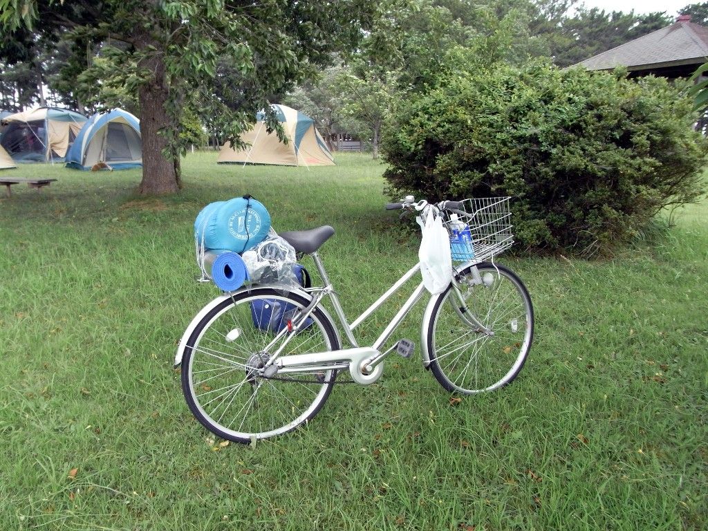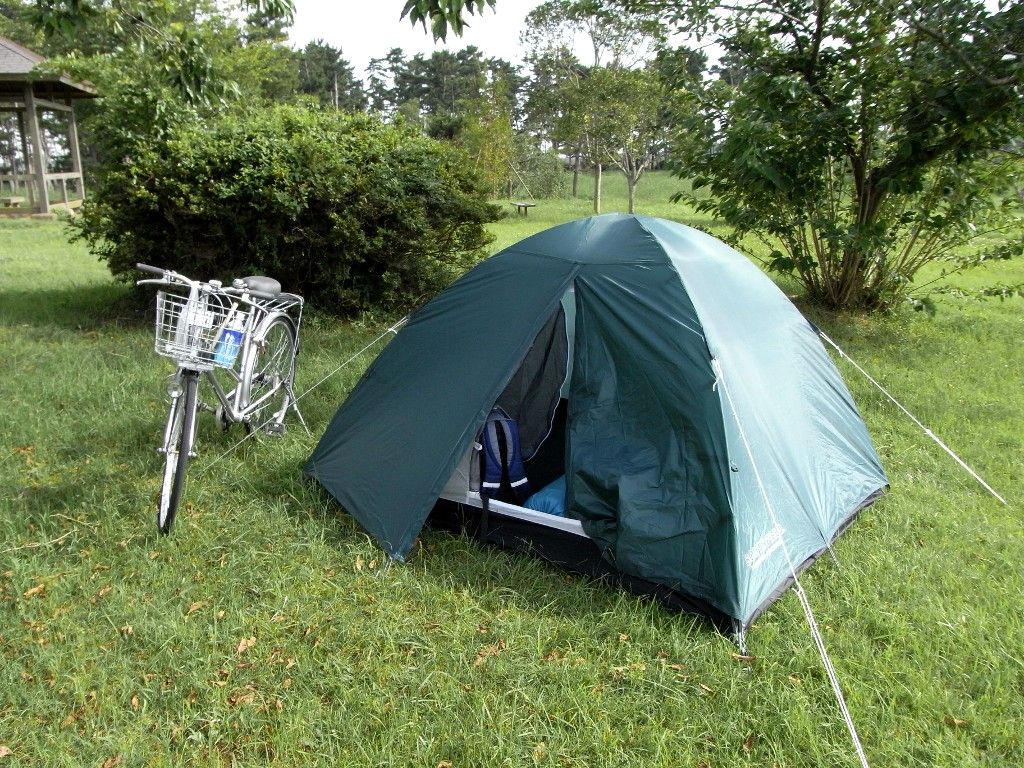 途中、またも道に迷いながらも、何とかキャンプ場に到着。サイクルコンピュータによれば、69km, 4時間35分だ。途中休み休みなので、実際は6時間くらい。ともかくテントをたてる。