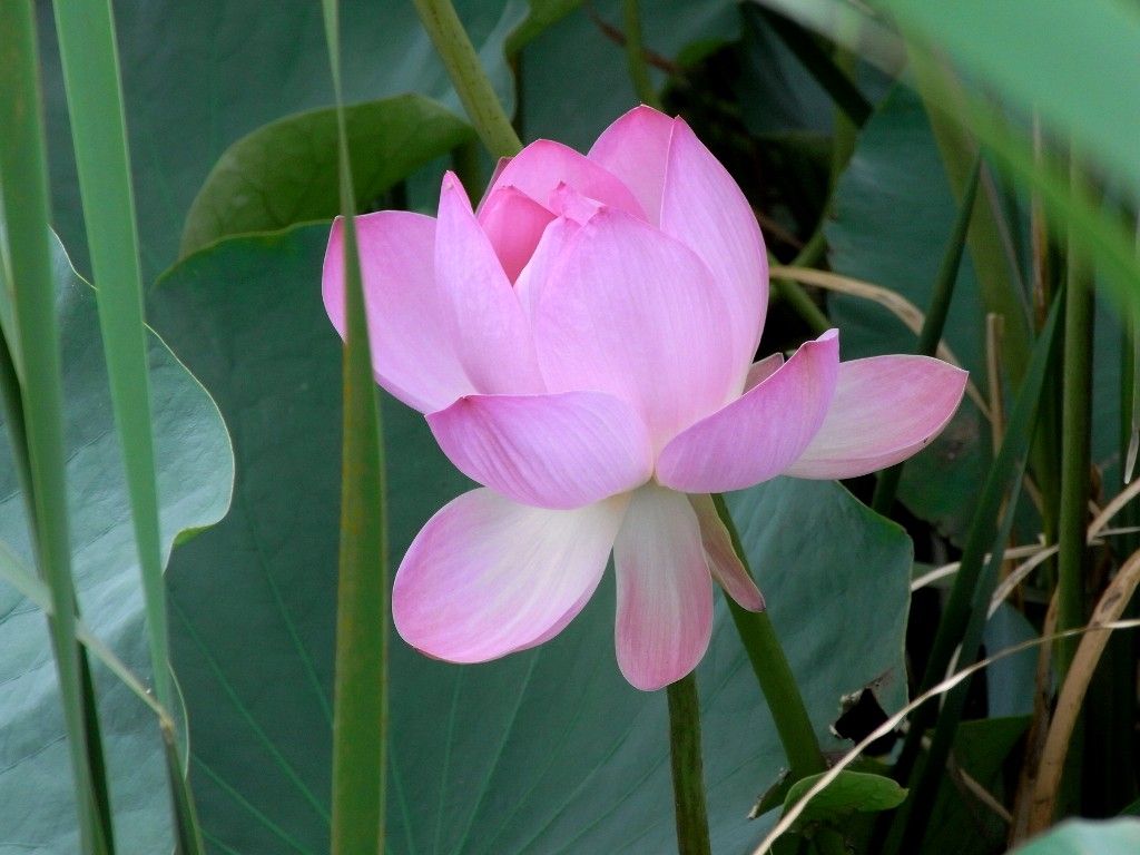 途中、手賀沼の蓮の群生地を通るので、開花状況の確認に寄ってみた。ちらほらと花が咲いているが、岸から近くにはこの一輪だけ。