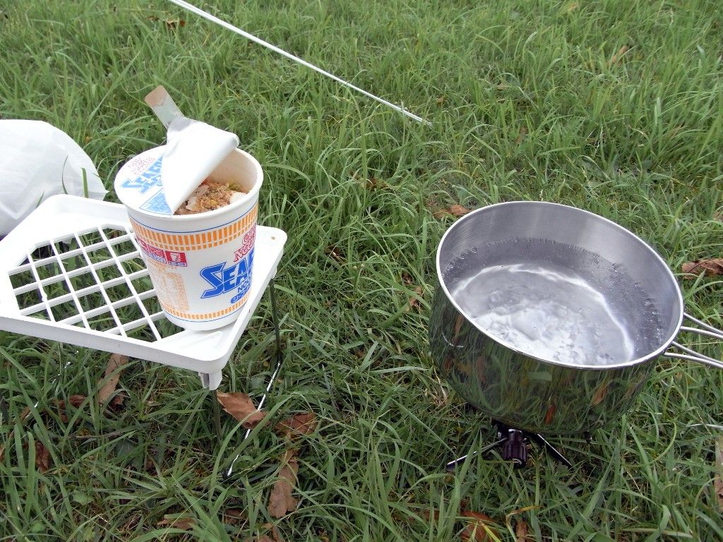 翌朝の食事はカップ麺。そそくさと撤収して、帰路につく。