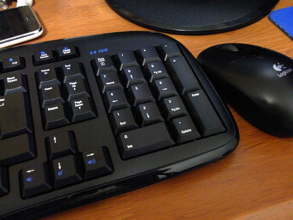 iPhoneを無線LANでちまちま使ってると、やっぱ線がないっていいなあ、と思う。そんなわけで、前から気になっていたコードレスキーボードとマウスのセット「ロジクール EX100 コードレスデスクトップ EX-100」を調べてみたら、amazonで送料込みで2,700円也。思わずポチッとして、本日届いた。