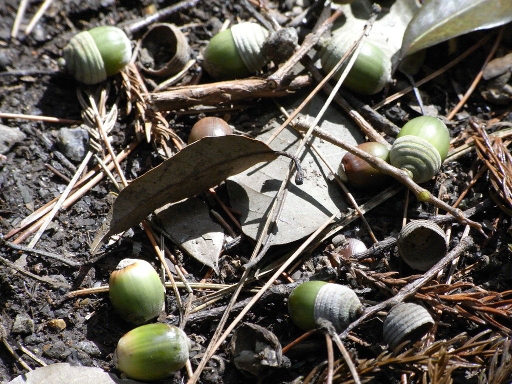 しばらく坂道を自転車を押して登っていくと、ゴルフ場にぶつかり、そこが岡発戸市民の森の入り口だ。(「おかぼっと」または「おかほっと」と読むのは、家に戻ってきてPCで調べて分かった。)森に向かって歩いていくと、なにかボタボタ落ちる音がする。どんぐりが盛んに落ちているのだ。こんなにひたすら落ちるものだとは知らなかった。