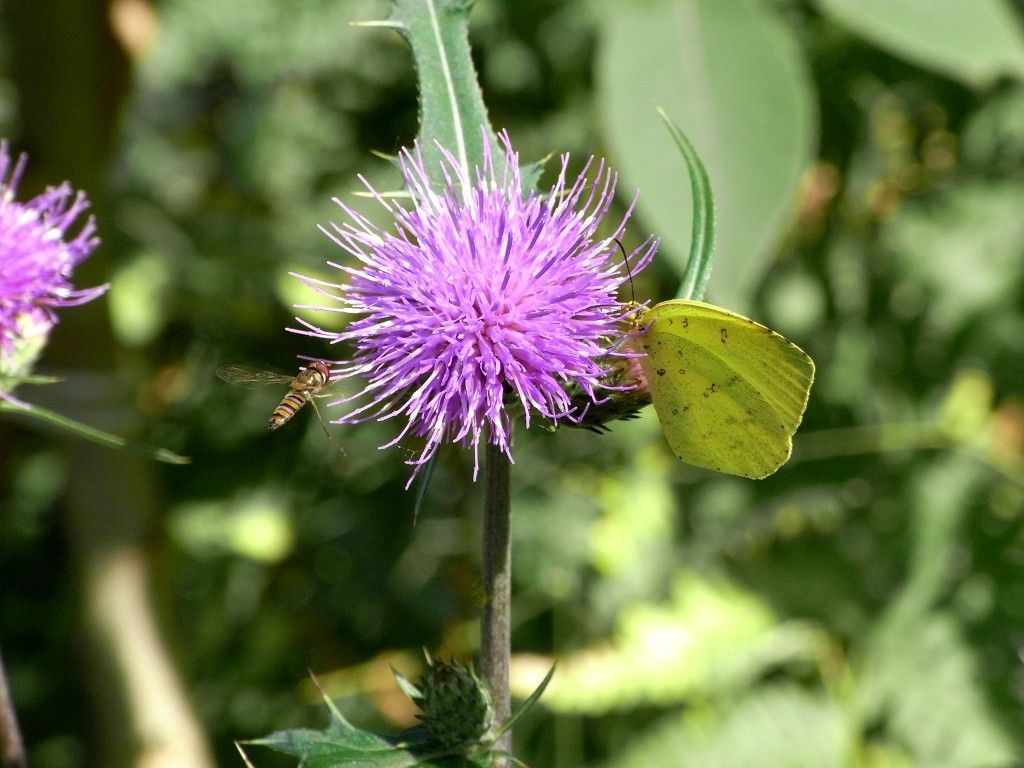 キク科の何かの花にハチが来ているところとか、アザミにハチやモンキチョウが来ているところを撮った。いつもと気分を変えて、ホバリングしているハチを撮ろうと頑張ったが、やっぱりブレてしまってなかなかうまく行かない。