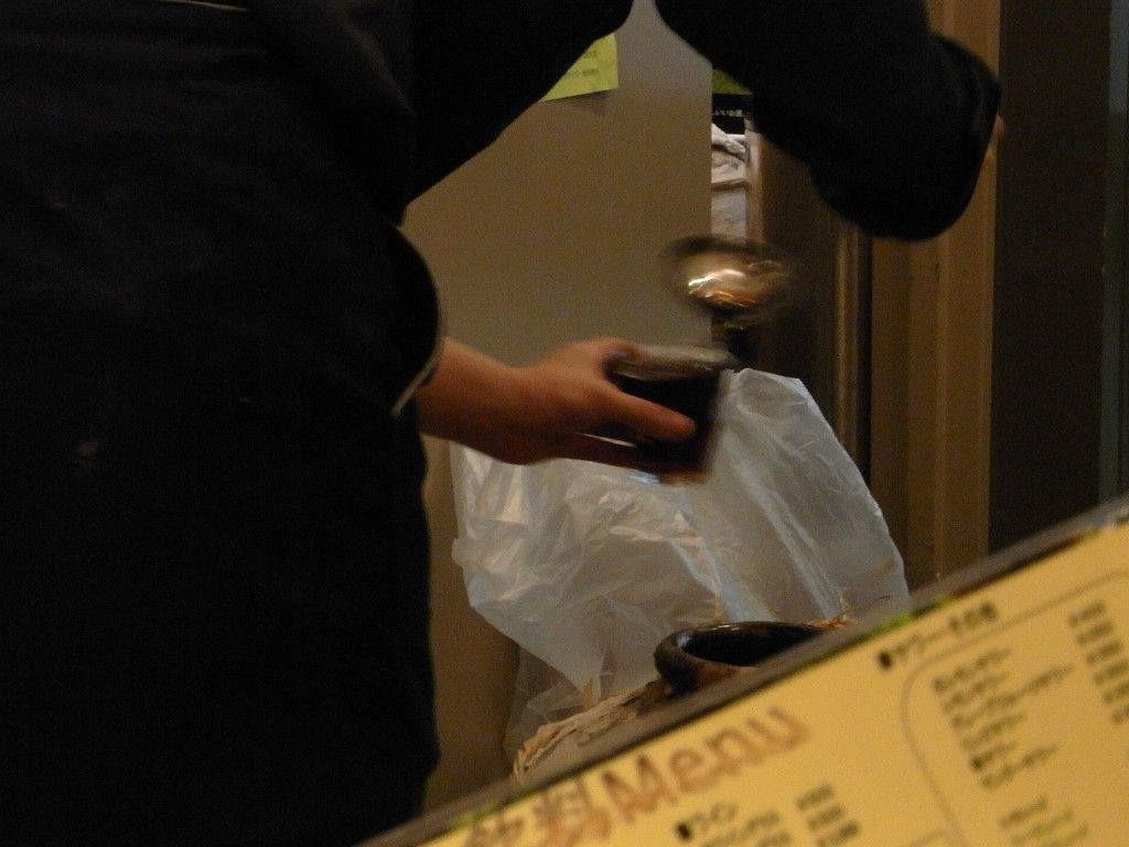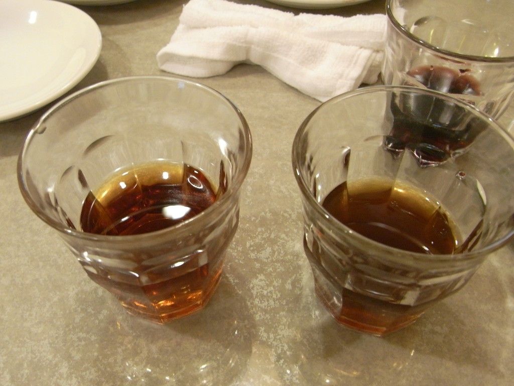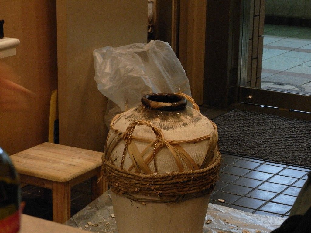 K君がなにやら店員さんと話をしているうちに、瓶の上の方と下の方ではだいぶ違うという話になったらしく、下の方からすくったのを味見をさせてもらった。右が下の方。残念ながら、もう既に酔っ払っていて、自分は味の違いは良く分からなかったが、見た目はだいぶ違っていておもしろい。