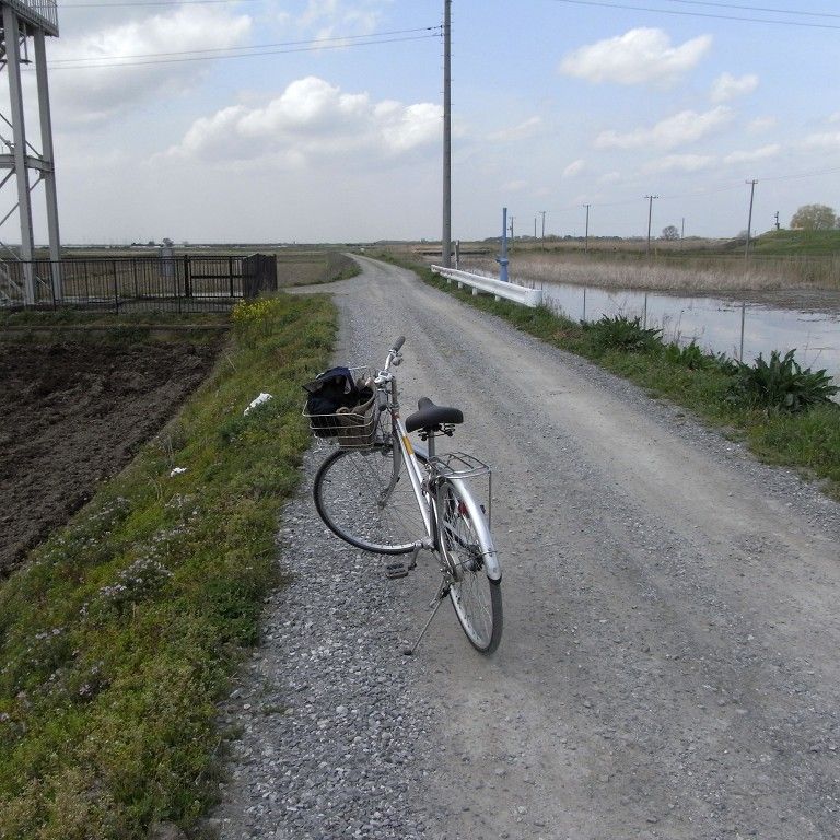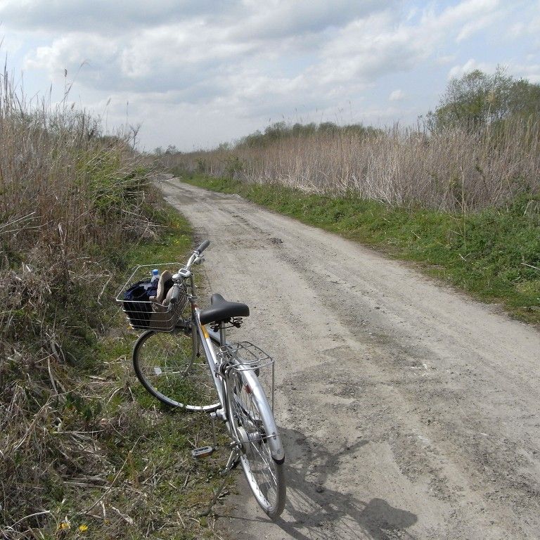 今度来たときのために良い場所はないかと、河原の道を進んでみたが、こんな道が続いて、最終的には模型飛行機の飛行場に着いただけだった。やたらにウグイスが鳴いていて、ほー法華経の声が近い。デジカメの動画で撮ってみたが、風のノイズがうるさくて失敗。