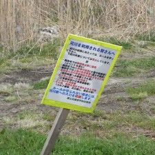 河原に降りる道に行ってみたら、こんな看板。焚き火は禁止だが、火気厳禁とは書いていない。てことは、コンロ持ってきて、ラーメンくらいなら大丈夫そうだ。いつか試してみよう。