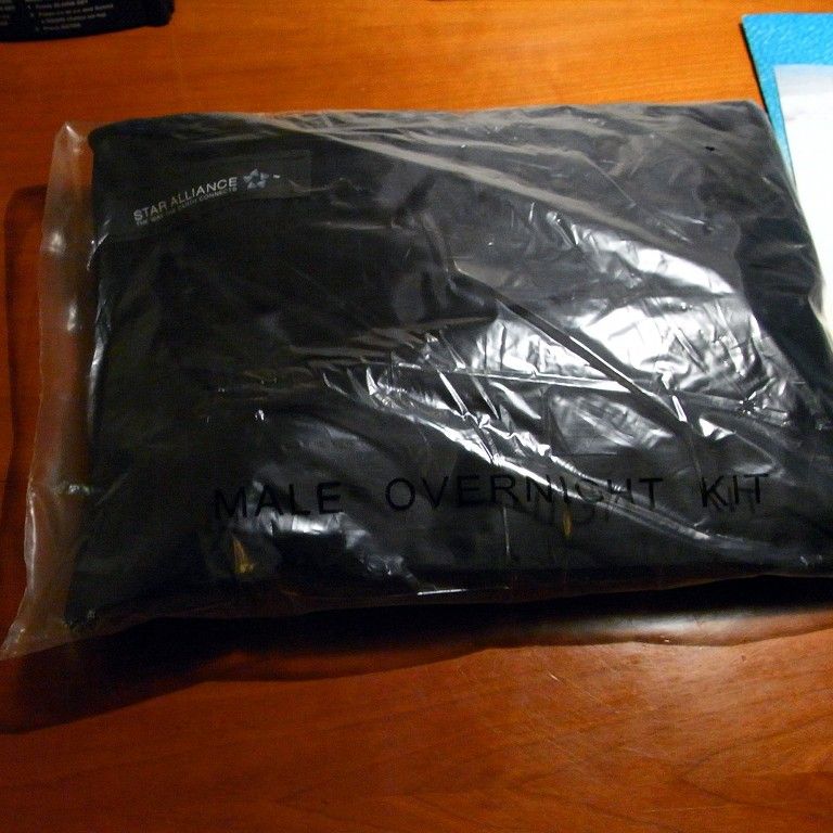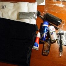 空港のカウンターでなにやら黒い袋を渡された。歯ブラシとかなら予備を持ってるからと思ったが、係員に「要らないの?」って念押しされて、ついもらってしまった。MALE OVERNIGHT KIT、男性用のお泊りセットだ。中身は、歯ブラシ、歯磨き、ブラシ、シャンプー、ヒゲソリ、シェービングクリーム、制汗剤、綿棒、丸首シャツ(なぜかXXL)に洗剤とお詫びのカード(各国語)。シャツがあるのにパンツがないのは不思議だが、他は洗濯しろってことかな。カバンが出てこなかったのは、これで3度目だが、こんないいものがあるとは知らなかった。