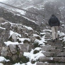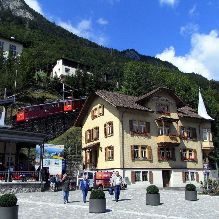 スイスでは、一日だけちょっと観光をさせてもらい、ピラトス山という2,000m級の山に、電車とバスを乗り継いで行ってきた。ここは48%という世界一急勾配のケーブルカーで有名なところで、頂上からはユングフラウなどが見渡せるはずだったのだが、頂上付近は雪が降っていて、一面のガスで何も見えなかった(泣)。