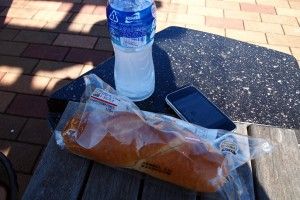 この日も朝飯を食わずに出かけたので、近所のローソンで先週と同じパンを買って食べた。ヤマザキのイチゴとマーガリンのコッペパンもおいしいが、ローソンのこれはパン自体がモッチリしてていい感じ。
