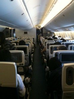 今回使ったANAのロンドン便は、777の最近投入された機材を使っている。エコノミーの席は広くて、装備が大変良く快適だった。ACコンセントもあるし、USBの口もあってiPhoneの充電もできる。席の仕様は、今話題の787のエコノミー席とも同じもののようだ。