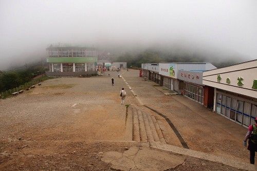 頂上付近はガスがかかっていて、雨も降り出しそうだ。この日は出足が遅く、格安レンタカーを運転して返しにいかなければならないので、自分は無理せずケーブルカーで下りて、カミさんとは駐車場で合流することにした。なので筑波山に登ったと言っても、半分だけってことになる。