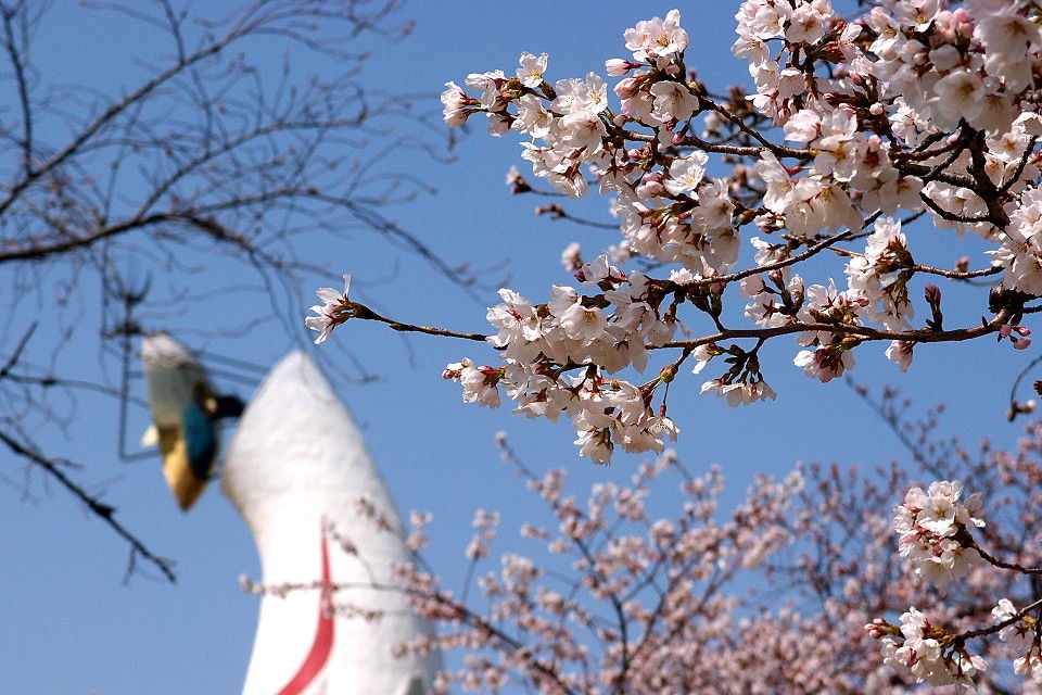 桜が囲む太陽の塔。すごくいいなぁ。