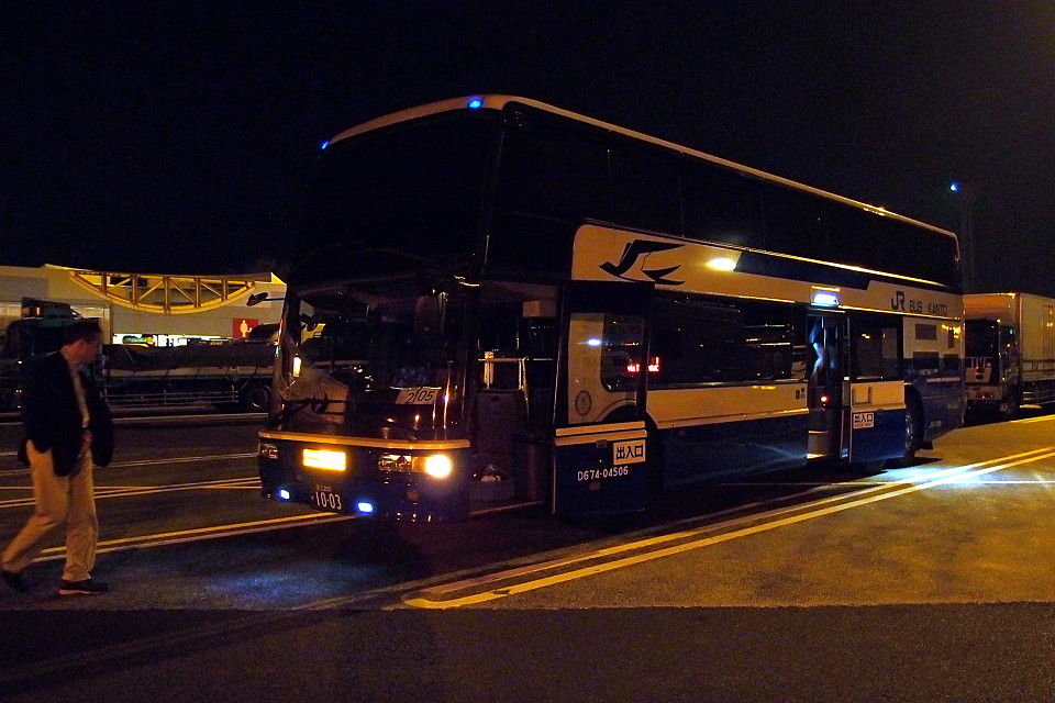 シートはかなりの角度でリクライニングになるが、目一杯に背もたれを倒すとかえって尻の安定が悪くて椅子から滑り下りてしまう感じ。背もたれはあまり倒さないほうが良い。毛布があるが、足元は少し冷える。また、振動も結構気になってしまう。ただ、いびきのうるさい人が気になるわけでもないし、出発したら社内はすぐ暗くなるので、耳栓もアイマスクもあまり出番がなかった。